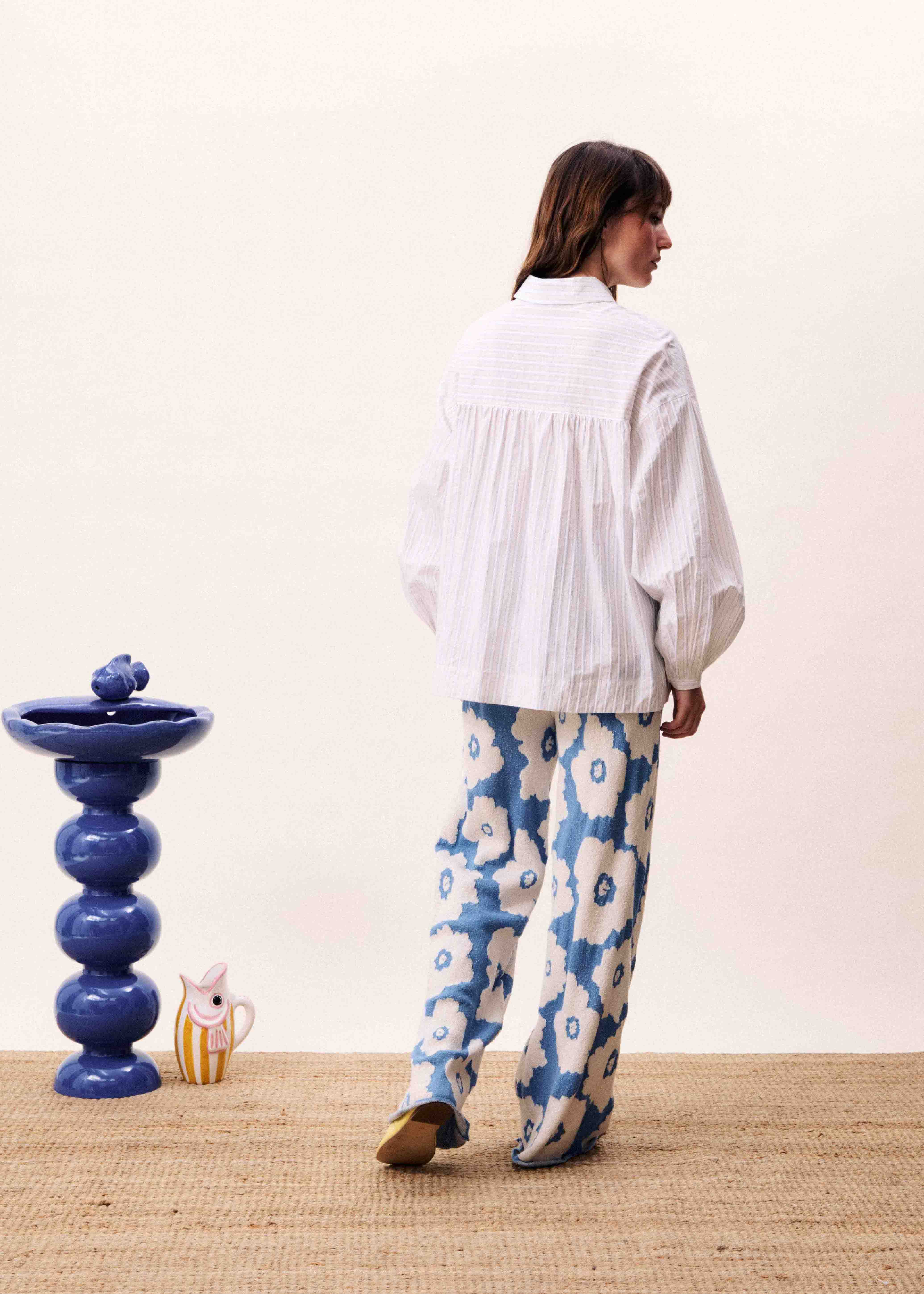 Chemise rayée en coton aux lignes verticales délicates et aux manches longues amples.