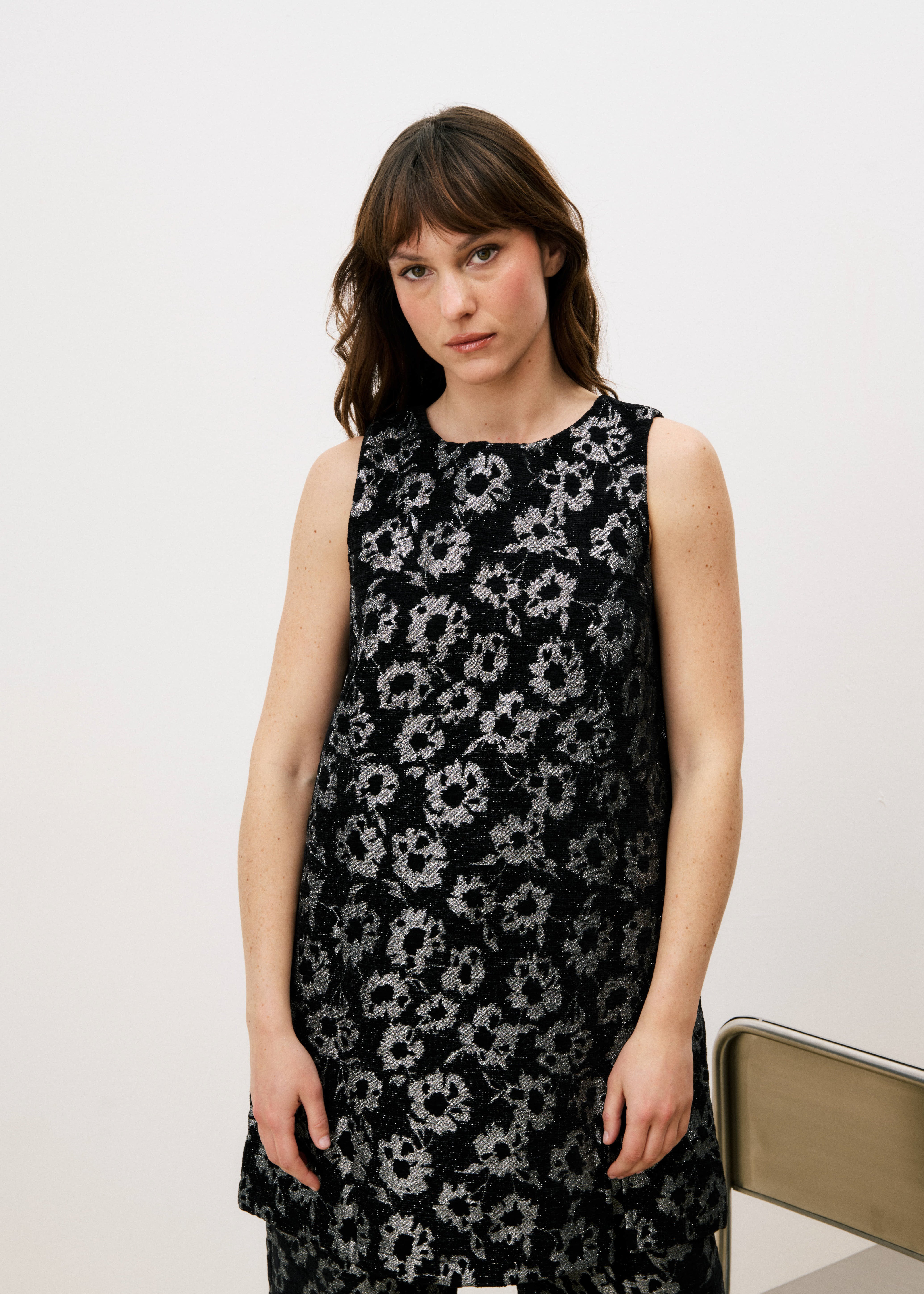 • Motif floral noir / argent lurex texturé