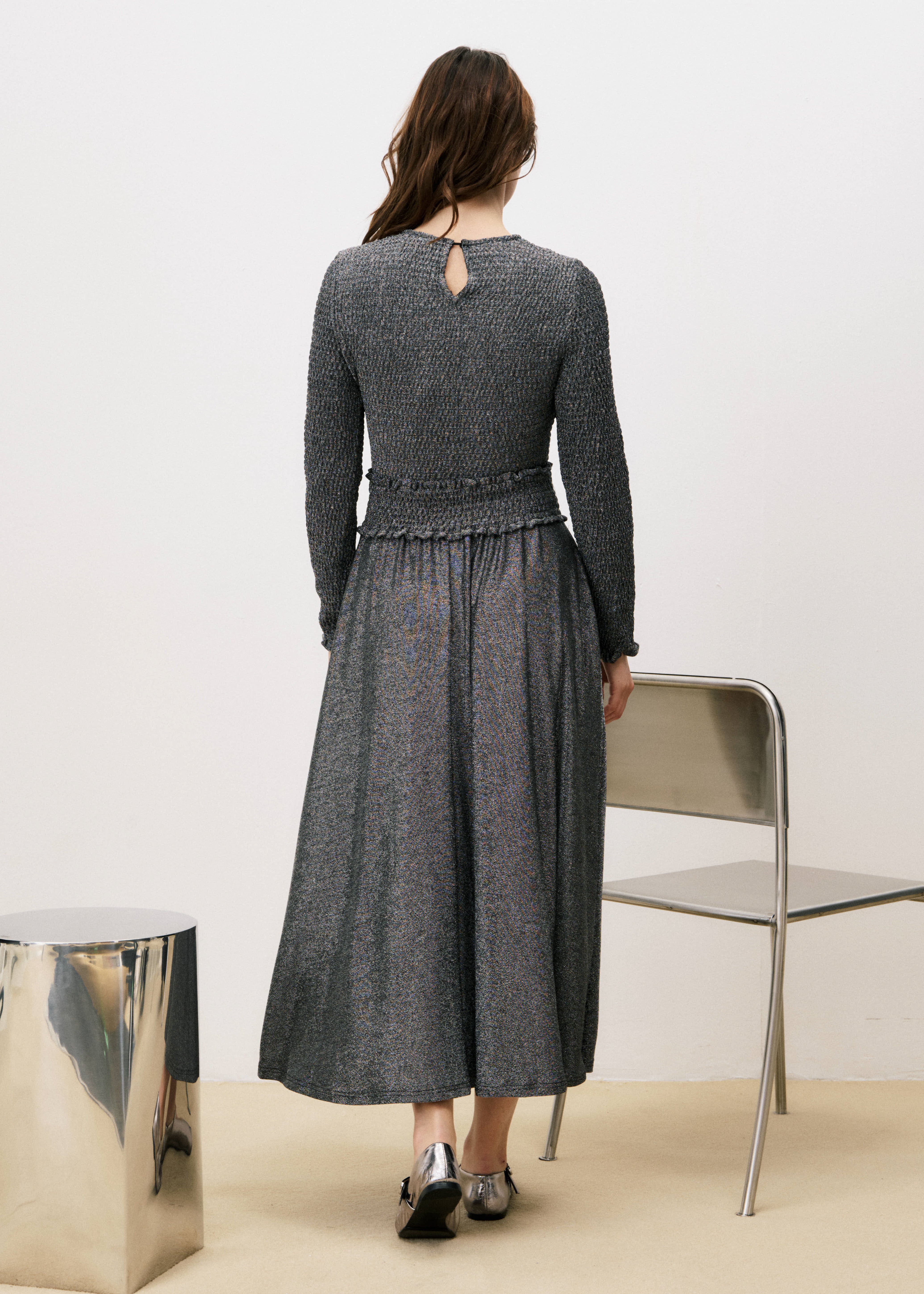 {"id":15049585394037,"title":"Robe DEBBIE Argente","handle":"robe-debbie-argente","description":"\u003cul\u003e\n\u003cli\u003eCoupe longue fluide\u003c\/li\u003e\n\u003cli\u003eEncolure ronde\u003c\/li\u003e\n\u003cli\u003eHaut smocké texturé\u003c\/li\u003e\n\u003cli\u003eTaille marquée par smocks\u003c\/li\u003e\n\u003cli\u003eManches longues resserrées au poignet\u003c\/li\u003e\n\u003cli\u003eMatière effet métallisé argenté souple et confortable\u003c\/li\u003e\n\u003c\/ul\u003e","published_at":"2025-11-07T02:27:49+01:00","created_at":"2025-06-17T14:29:57+02:00","vendor":"FRNCH","type":"Robes","tags":["cybermonday25","FEMME","FM-CHC25878-ARGENTE","FM-SPLIT_MASTER_COLOR","FW 2025 HW","FW25","Robe","robefêtes"],"price":11500,"price_min":11500,"price_max":11500,"available":true,"price_varies":false,"compare_at_price":null,"compare_at_price_min":0,"compare_at_price_max":0,"compare_at_price_varies":false,"variants":[{"id":55503622308213,"title":"XS \/ ARGENTE","option1":"XS","option2":"ARGENTE","option3":null,"sku":"CHC25878-ARGENTE-XS#212022","requires_shipping":true,"taxable":true,"featured_image":null,"available":true,"name":"Robe DEBBIE Argente - XS \/ ARGENTE","public_title":"XS \/ ARGENTE","options":["XS","ARGENTE"],"price":11500,"weight":655,"compare_at_price":null,"inventory_management":"shopify","barcode":"3663642553487","requires_selling_plan":false,"selling_plan_allocations":[]},{"id":55503622340981,"title":"S \/ ARGENTE","option1":"S","option2":"ARGENTE","option3":null,"sku":"CHC25878-ARGENTE-S#212023","requires_shipping":true,"taxable":true,"featured_image":null,"available":true,"name":"Robe DEBBIE Argente - S \/ ARGENTE","public_title":"S \/ ARGENTE","options":["S","ARGENTE"],"price":11500,"weight":655,"compare_at_price":null,"inventory_management":"shopify","barcode":"3663642553494","requires_selling_plan":false,"selling_plan_allocations":[]},{"id":55503622373749,"title":"M \/ ARGENTE","option1":"M","option2":"ARGENTE","option3":null,"sku":"CHC25878-ARGENTE-M#212024","requires_shipping":true,"taxable":true,"featured_image":null,"available":true,"name":"Robe DEBBIE Argente - M \/ ARGENTE","public_title":"M \/ ARGENTE","options":["M","ARGENTE"],"price":11500,"weight":655,"compare_at_price":null,"inventory_management":"shopify","barcode":"3663642553500","requires_selling_plan":false,"selling_plan_allocations":[]},{"id":55503622406517,"title":"L \/ ARGENTE","option1":"L","option2":"ARGENTE","option3":null,"sku":"CHC25878-ARGENTE-L#212025","requires_shipping":true,"taxable":true,"featured_image":null,"available":true,"name":"Robe DEBBIE Argente - L \/ ARGENTE","public_title":"L \/ ARGENTE","options":["L","ARGENTE"],"price":11500,"weight":655,"compare_at_price":null,"inventory_management":"shopify","barcode":"3663642553517","requires_selling_plan":false,"selling_plan_allocations":[]},{"id":55503622439285,"title":"XL \/ ARGENTE","option1":"XL","option2":"ARGENTE","option3":null,"sku":"CHC25878-ARGENTE-XL#212026","requires_shipping":true,"taxable":true,"featured_image":null,"available":true,"name":"Robe DEBBIE Argente - XL \/ ARGENTE","public_title":"XL \/ ARGENTE","options":["XL","ARGENTE"],"price":11500,"weight":655,"compare_at_price":null,"inventory_management":"shopify","barcode":"3663642553524","requires_selling_plan":false,"selling_plan_allocations":[]}],"images":["\/\/www.frnch.fr\/cdn\/shop\/files\/CHC25878-ARGENTE-1.jpg?v=1761905030","\/\/www.frnch.fr\/cdn\/shop\/files\/CHC25878-ARGENTE-2.jpg?v=1761905030","\/\/www.frnch.fr\/cdn\/shop\/files\/CHC25878-ARGENTE-3.jpg?v=1761905030","\/\/www.frnch.fr\/cdn\/shop\/files\/CHC25878-ARGENTE-4.jpg?v=1761905030","\/\/www.frnch.fr\/cdn\/shop\/files\/CHC25878FRONT.jpg?v=1763374809","\/\/www.frnch.fr\/cdn\/shop\/files\/CHC25878BACK.jpg?v=1763374815"],"featured_image":"\/\/www.frnch.fr\/cdn\/shop\/files\/CHC25878-ARGENTE-1.jpg?v=1761905030","options":["Taille","Couleur"],"media":[{"alt":null,"id":66575435170165,"position":1,"preview_image":{"aspect_ratio":0.714,"height":5797,"width":4140,"src":"\/\/www.frnch.fr\/cdn\/shop\/files\/CHC25878-ARGENTE-1.jpg?v=1761905030"},"aspect_ratio":0.714,"height":5797,"media_type":"image","src":"\/\/www.frnch.fr\/cdn\/shop\/files\/CHC25878-ARGENTE-1.jpg?v=1761905030","width":4140},{"alt":null,"id":66575435202933,"position":2,"preview_image":{"aspect_ratio":0.714,"height":5797,"width":4140,"src":"\/\/www.frnch.fr\/cdn\/shop\/files\/CHC25878-ARGENTE-2.jpg?v=1761905030"},"aspect_ratio":0.714,"height":5797,"media_type":"image","src":"\/\/www.frnch.fr\/cdn\/shop\/files\/CHC25878-ARGENTE-2.jpg?v=1761905030","width":4140},{"alt":null,"id":66575435104629,"position":3,"preview_image":{"aspect_ratio":0.714,"height":5797,"width":4140,"src":"\/\/www.frnch.fr\/cdn\/shop\/files\/CHC25878-ARGENTE-3.jpg?v=1761905030"},"aspect_ratio":0.714,"height":5797,"media_type":"image","src":"\/\/www.frnch.fr\/cdn\/shop\/files\/CHC25878-ARGENTE-3.jpg?v=1761905030","width":4140},{"alt":null,"id":66575435137397,"position":4,"preview_image":{"aspect_ratio":0.714,"height":5797,"width":4140,"src":"\/\/www.frnch.fr\/cdn\/shop\/files\/CHC25878-ARGENTE-4.jpg?v=1761905030"},"aspect_ratio":0.714,"height":5797,"media_type":"image","src":"\/\/www.frnch.fr\/cdn\/shop\/files\/CHC25878-ARGENTE-4.jpg?v=1761905030","width":4140},{"alt":null,"id":66818419163509,"position":5,"preview_image":{"aspect_ratio":0.714,"height":2870,"width":2050,"src":"\/\/www.frnch.fr\/cdn\/shop\/files\/CHC25878FRONT.jpg?v=1763374809"},"aspect_ratio":0.714,"height":2870,"media_type":"image","src":"\/\/www.frnch.fr\/cdn\/shop\/files\/CHC25878FRONT.jpg?v=1763374809","width":2050},{"alt":null,"id":66818419917173,"position":6,"preview_image":{"aspect_ratio":0.714,"height":2870,"width":2050,"src":"\/\/www.frnch.fr\/cdn\/shop\/files\/CHC25878BACK.jpg?v=1763374815"},"aspect_ratio":0.714,"height":2870,"media_type":"image","src":"\/\/www.frnch.fr\/cdn\/shop\/files\/CHC25878BACK.jpg?v=1763374815","width":2050}],"requires_selling_plan":false,"selling_plan_groups":[],"content