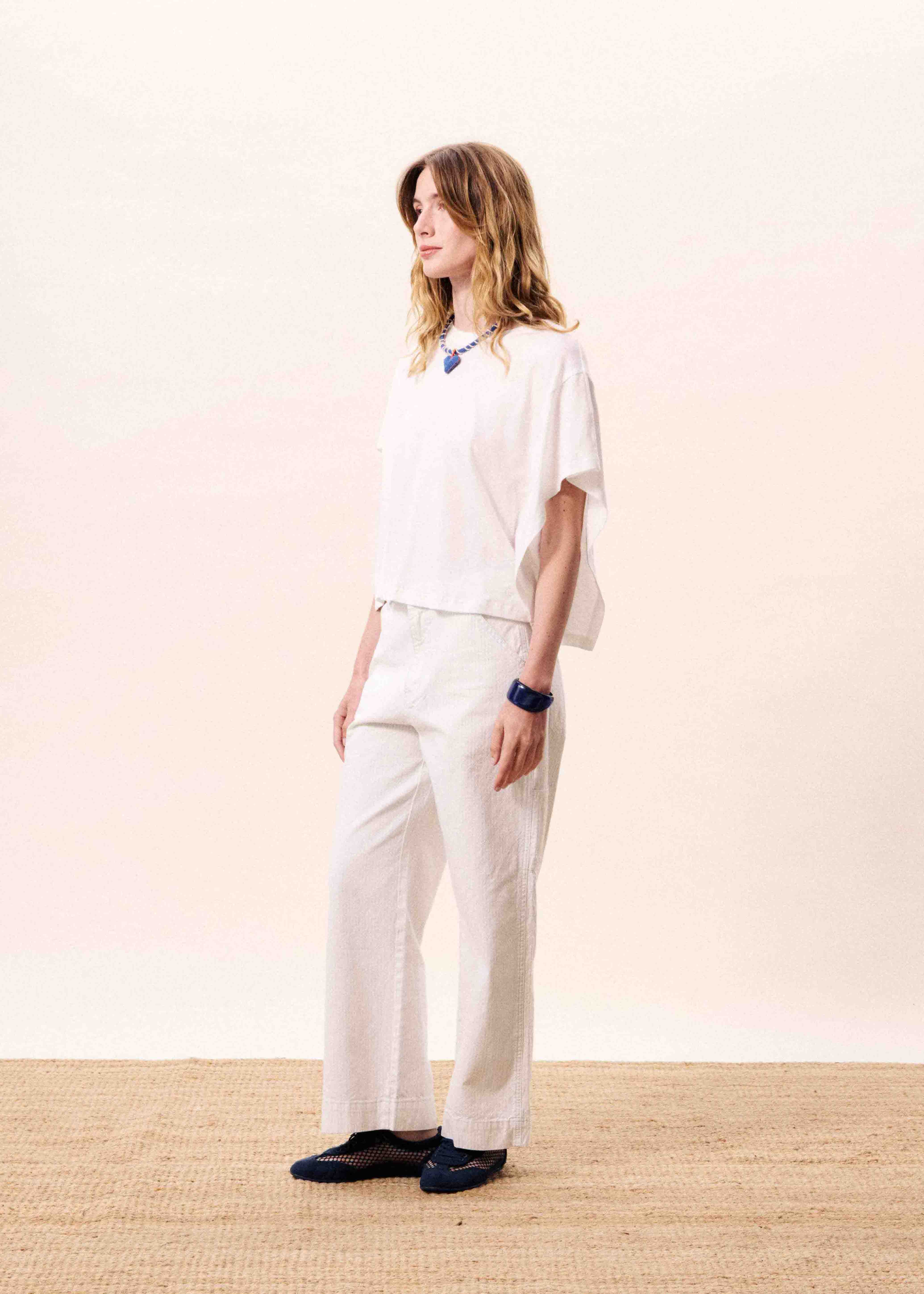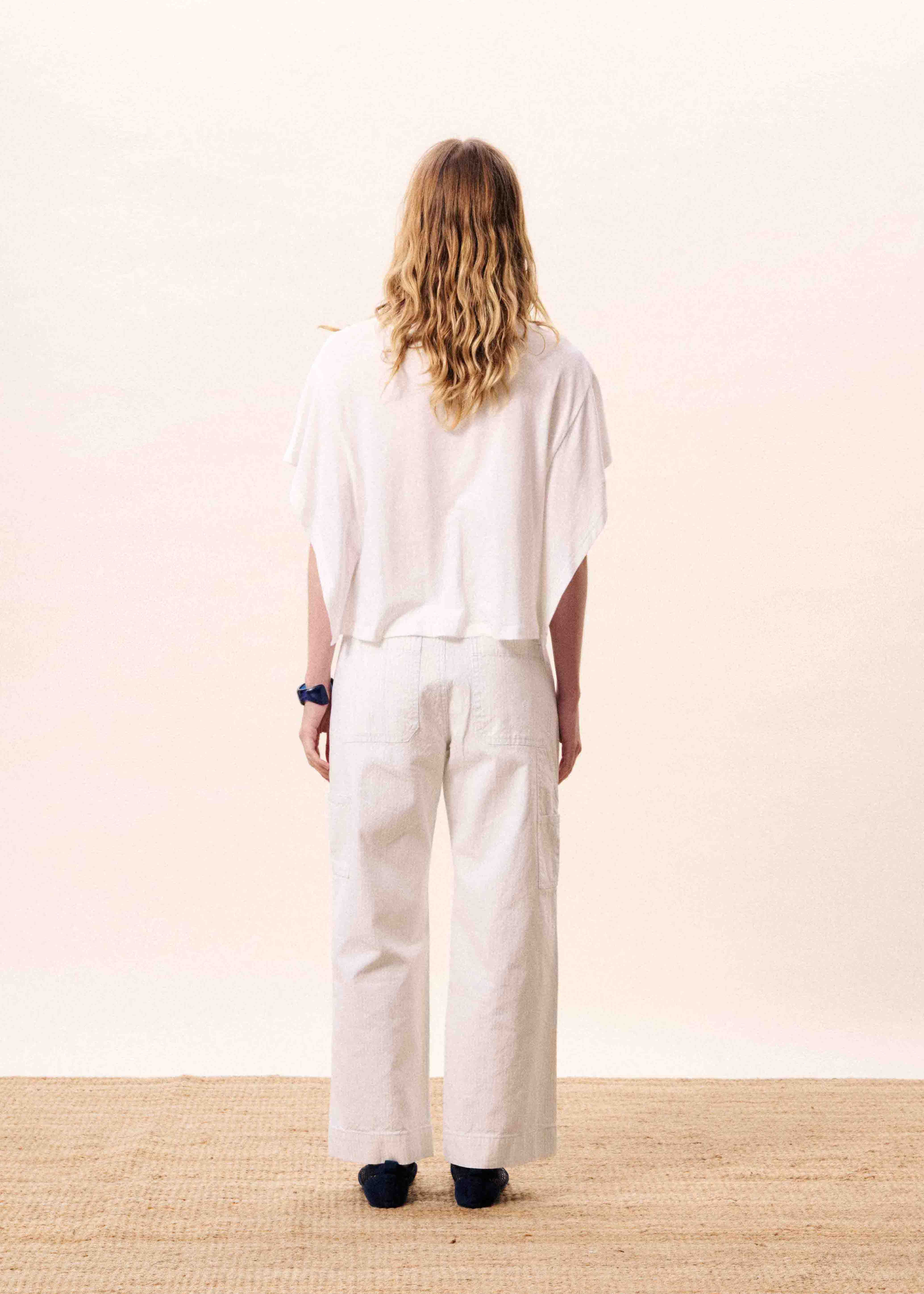• Wide-leg, straight-cut trousers