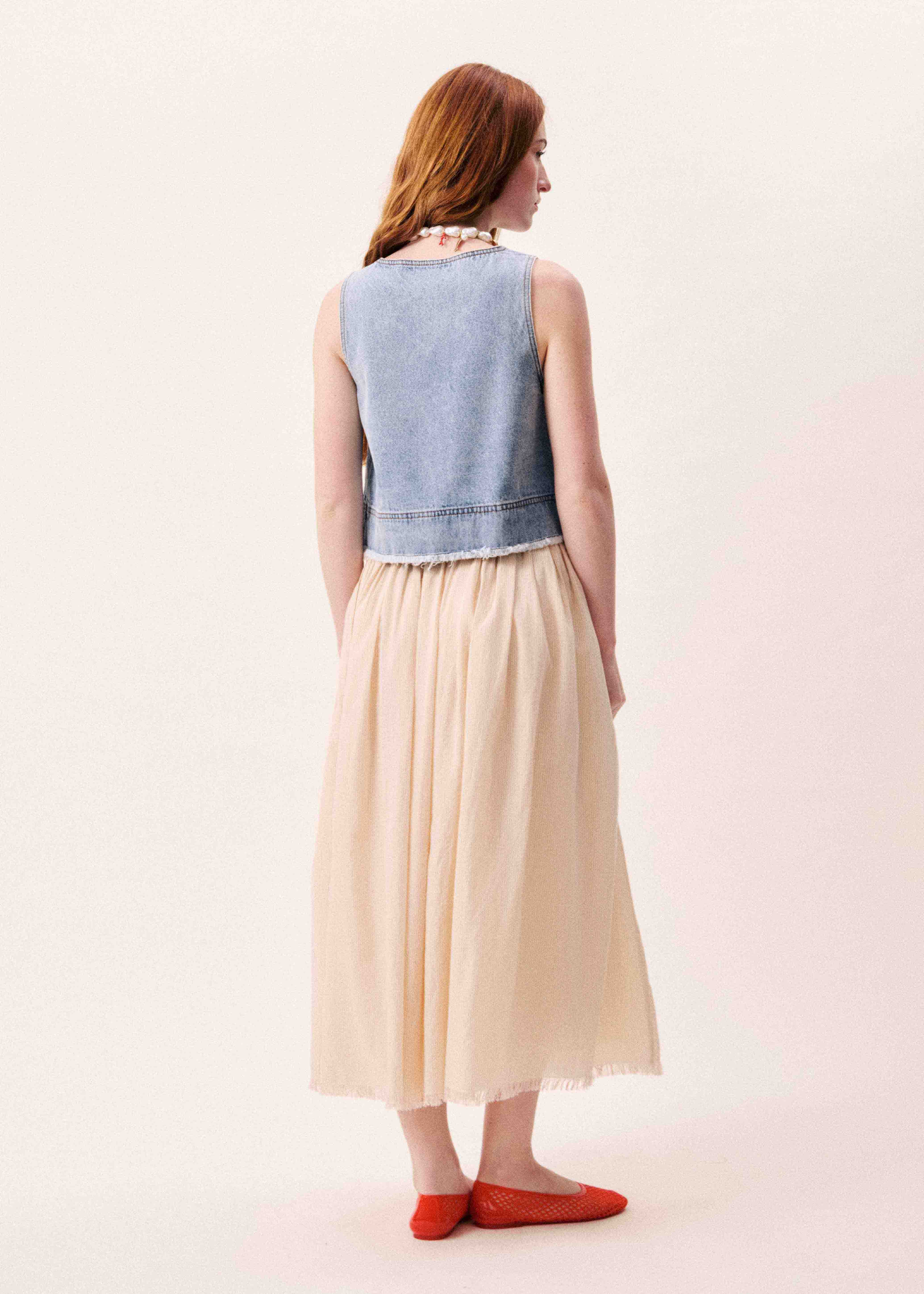 • Long flared skirt with vertical pleats