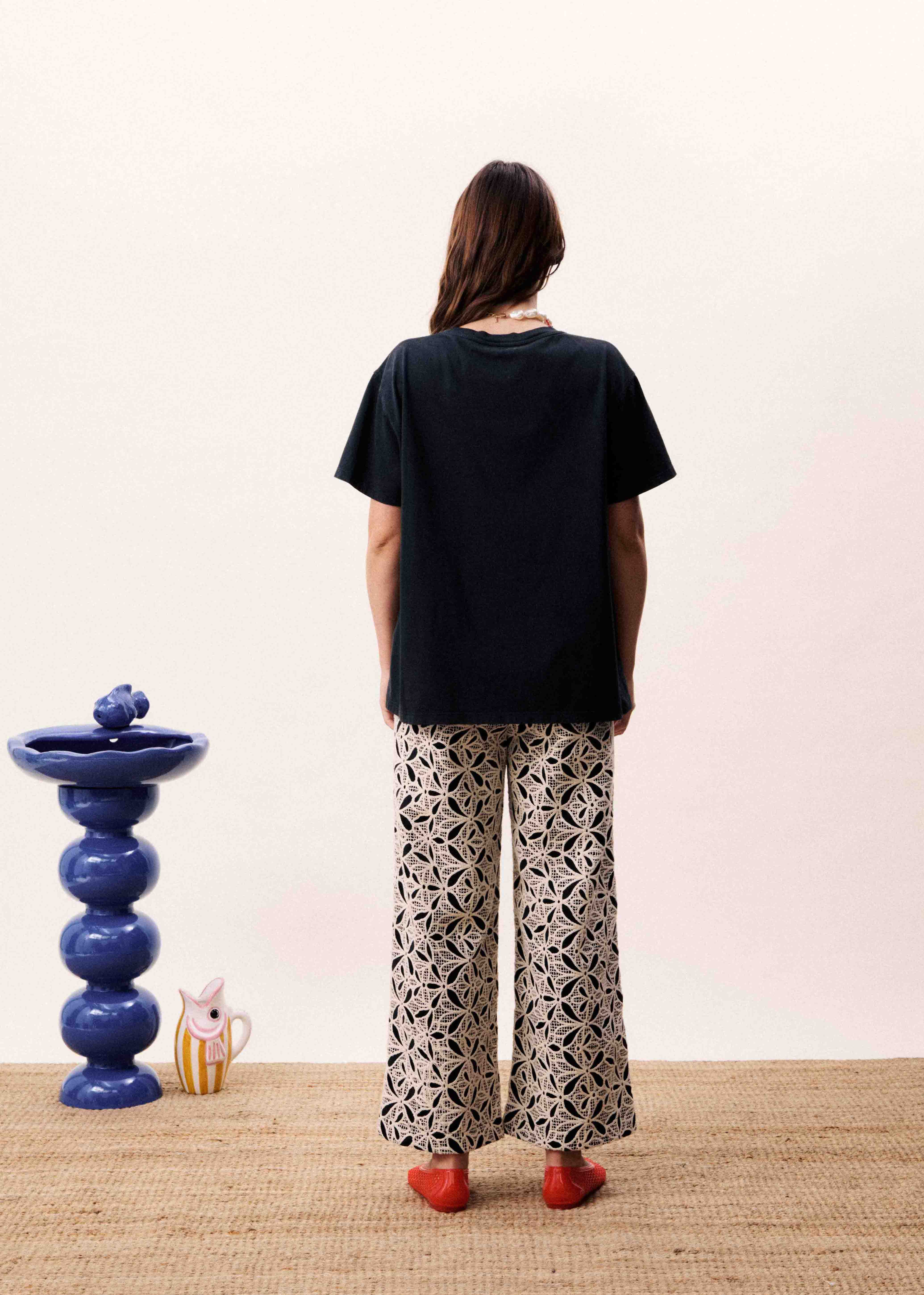 • Loose-fitting trousers with wide legs