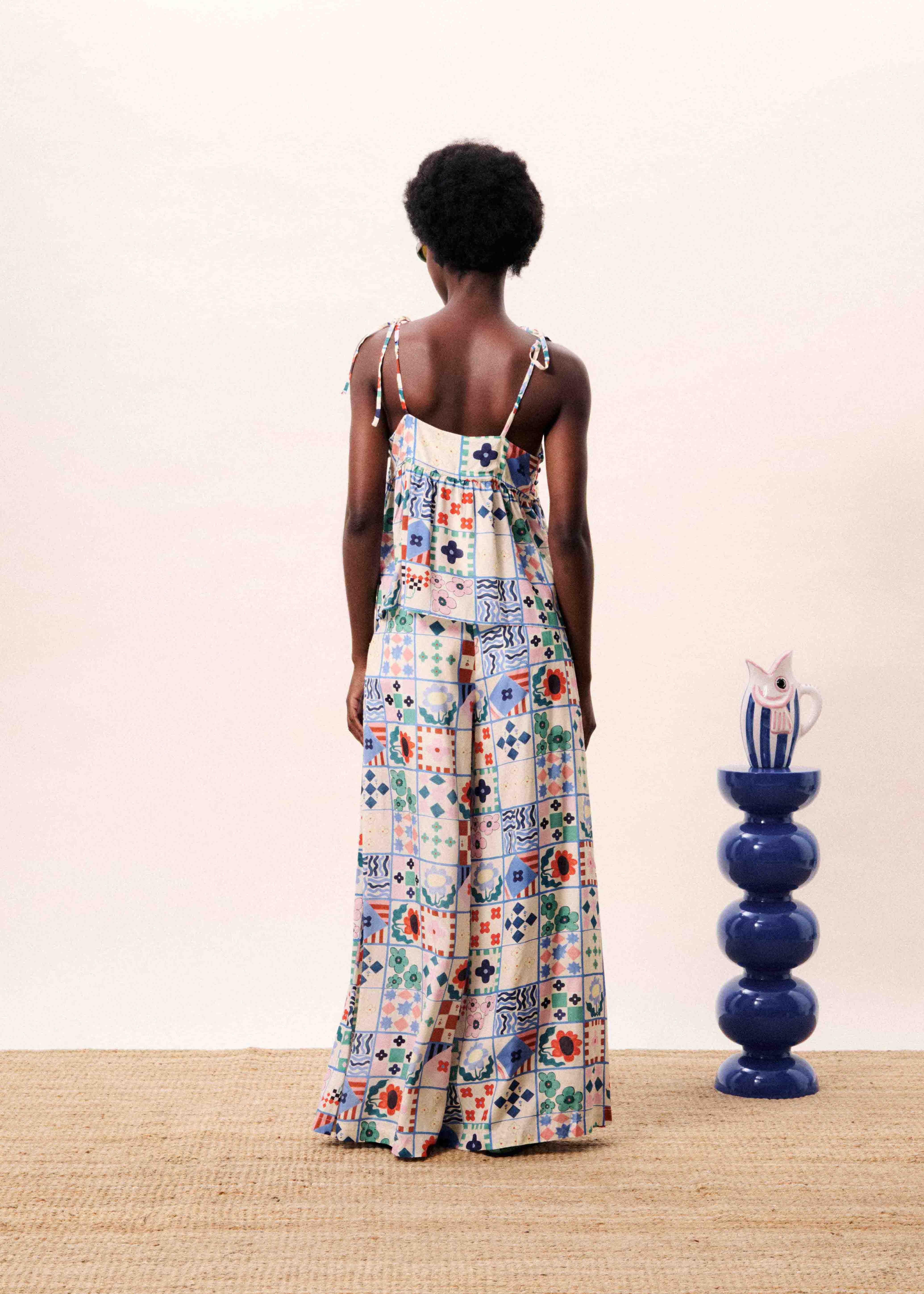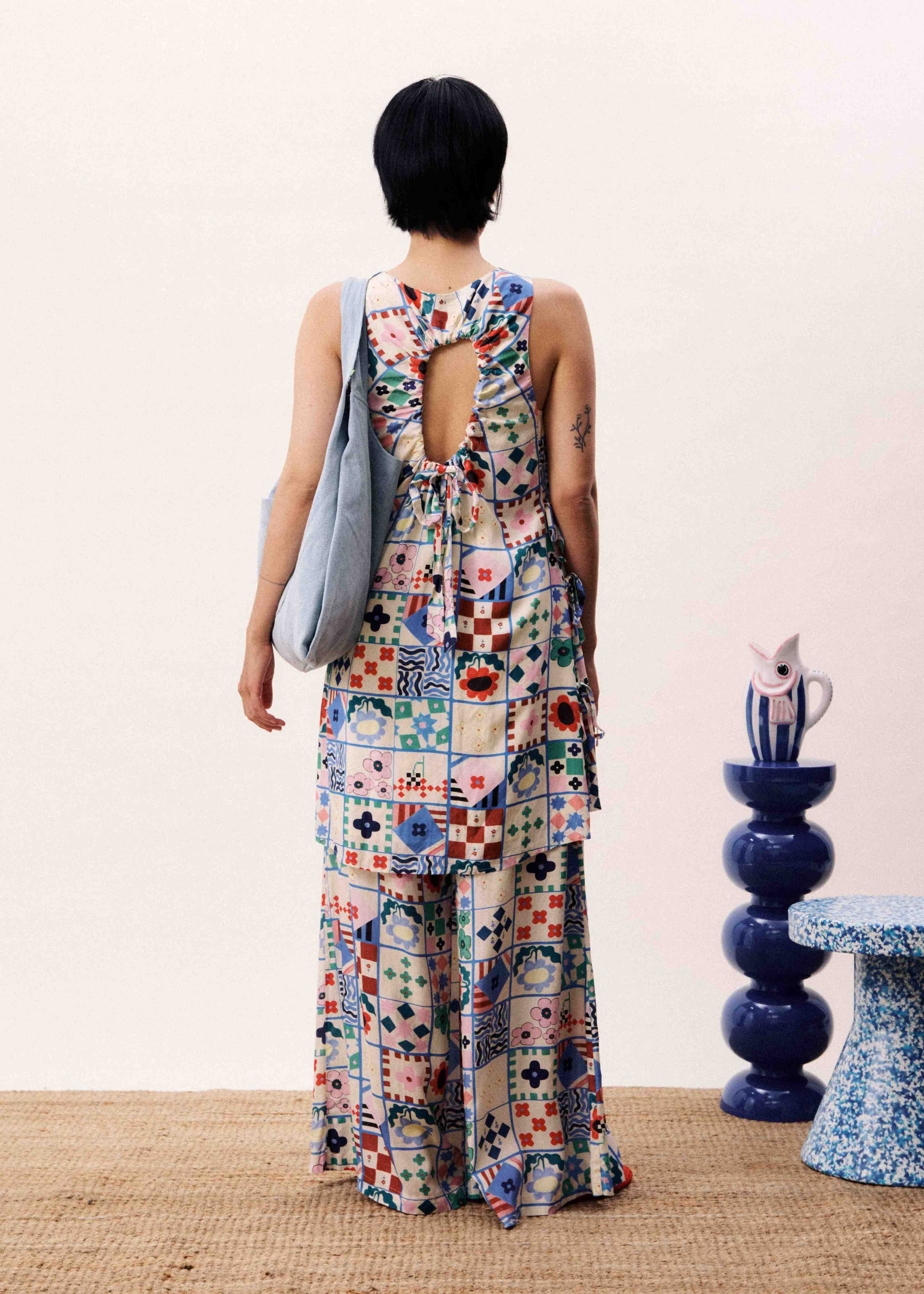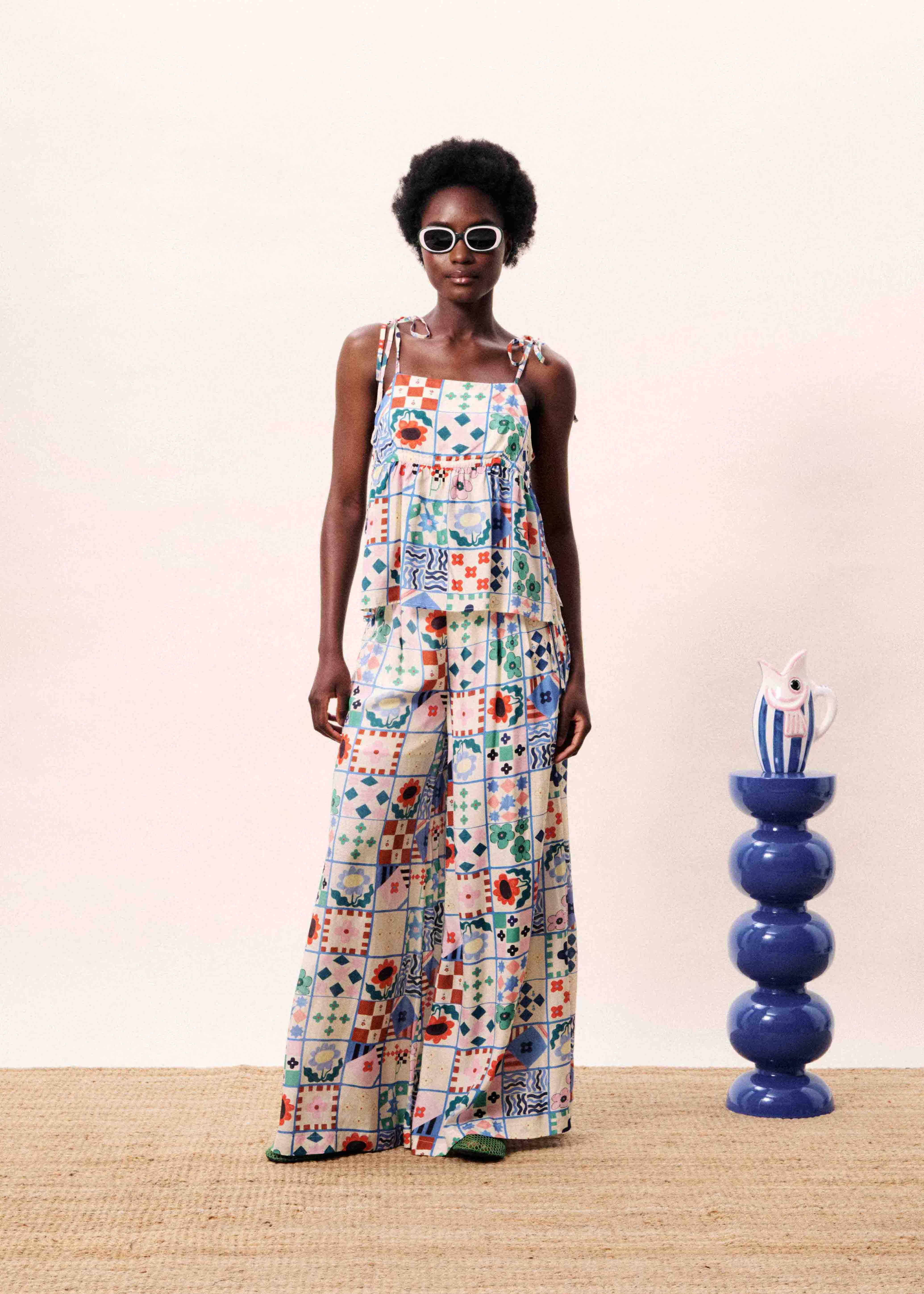 • Patchwork print composed of geometric and floral patterns
