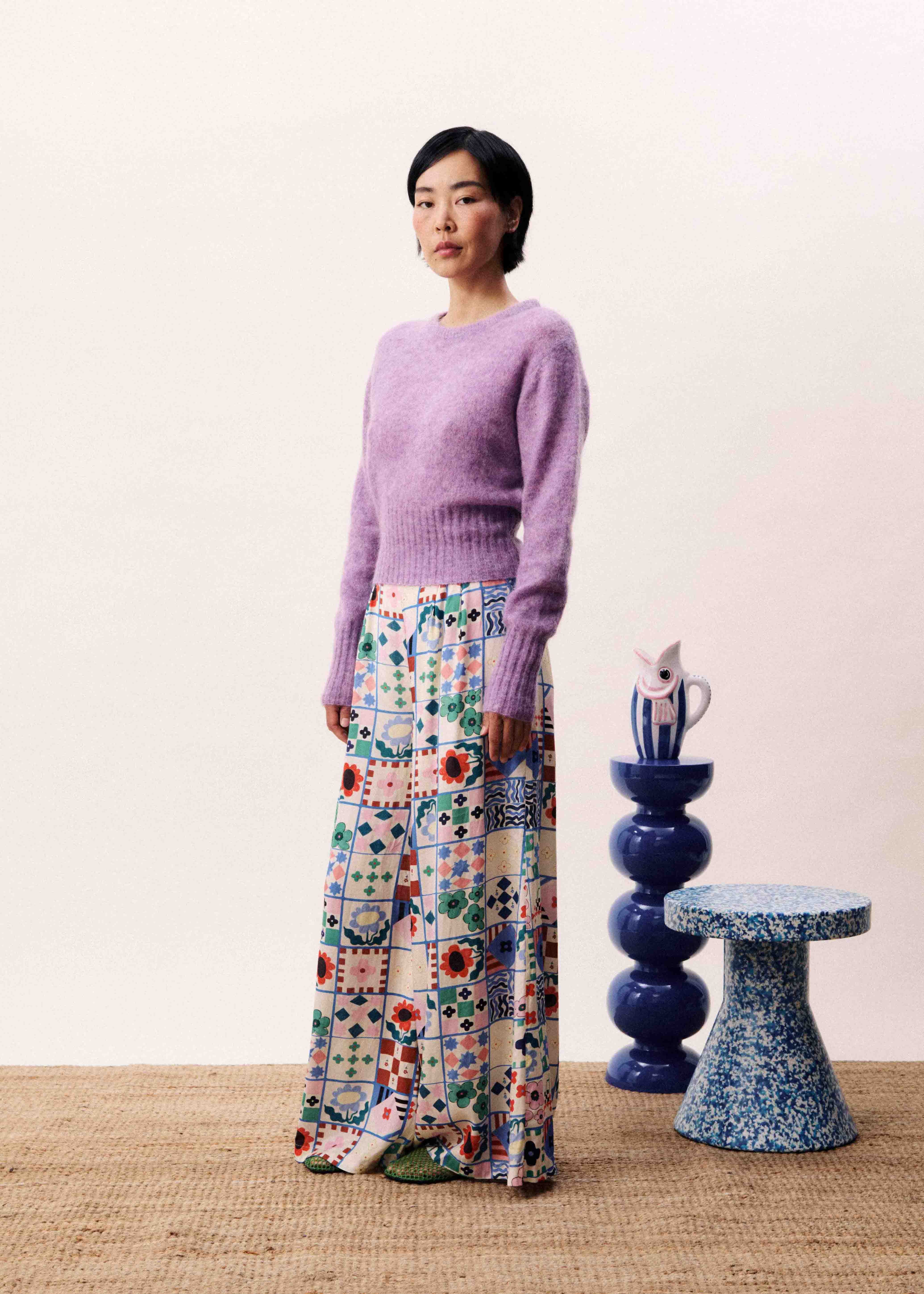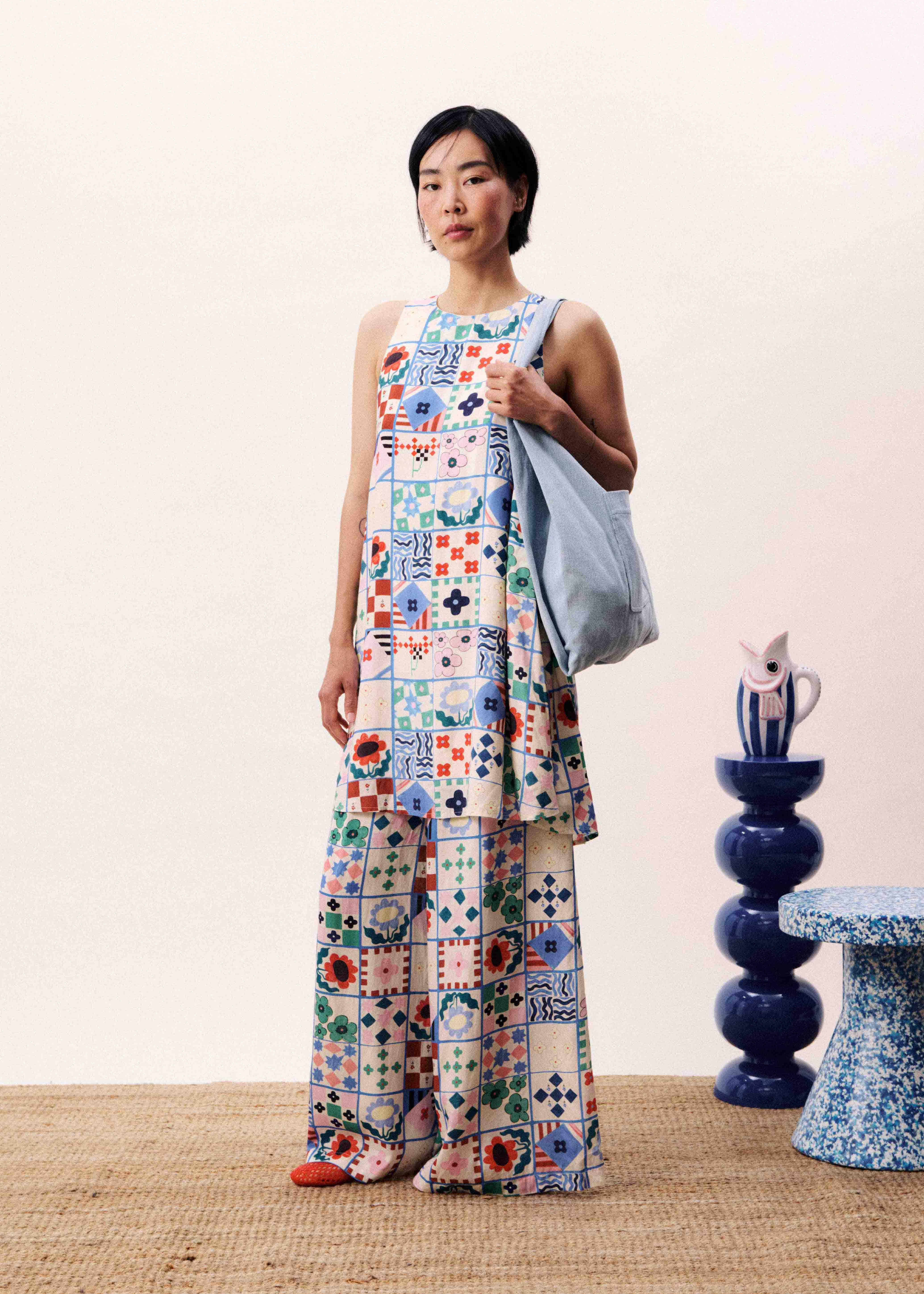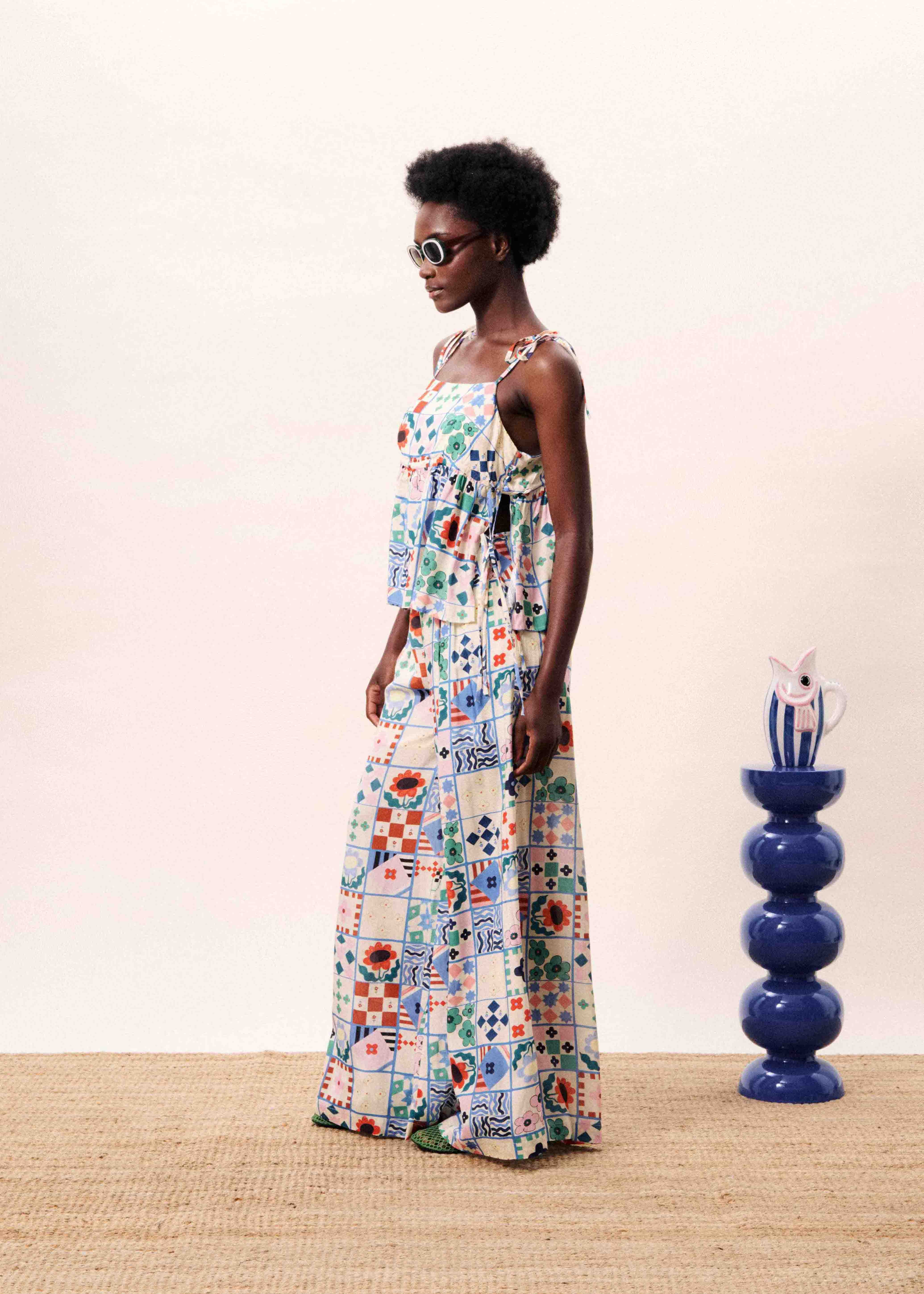 • Patchwork print composed of geometric and floral patterns