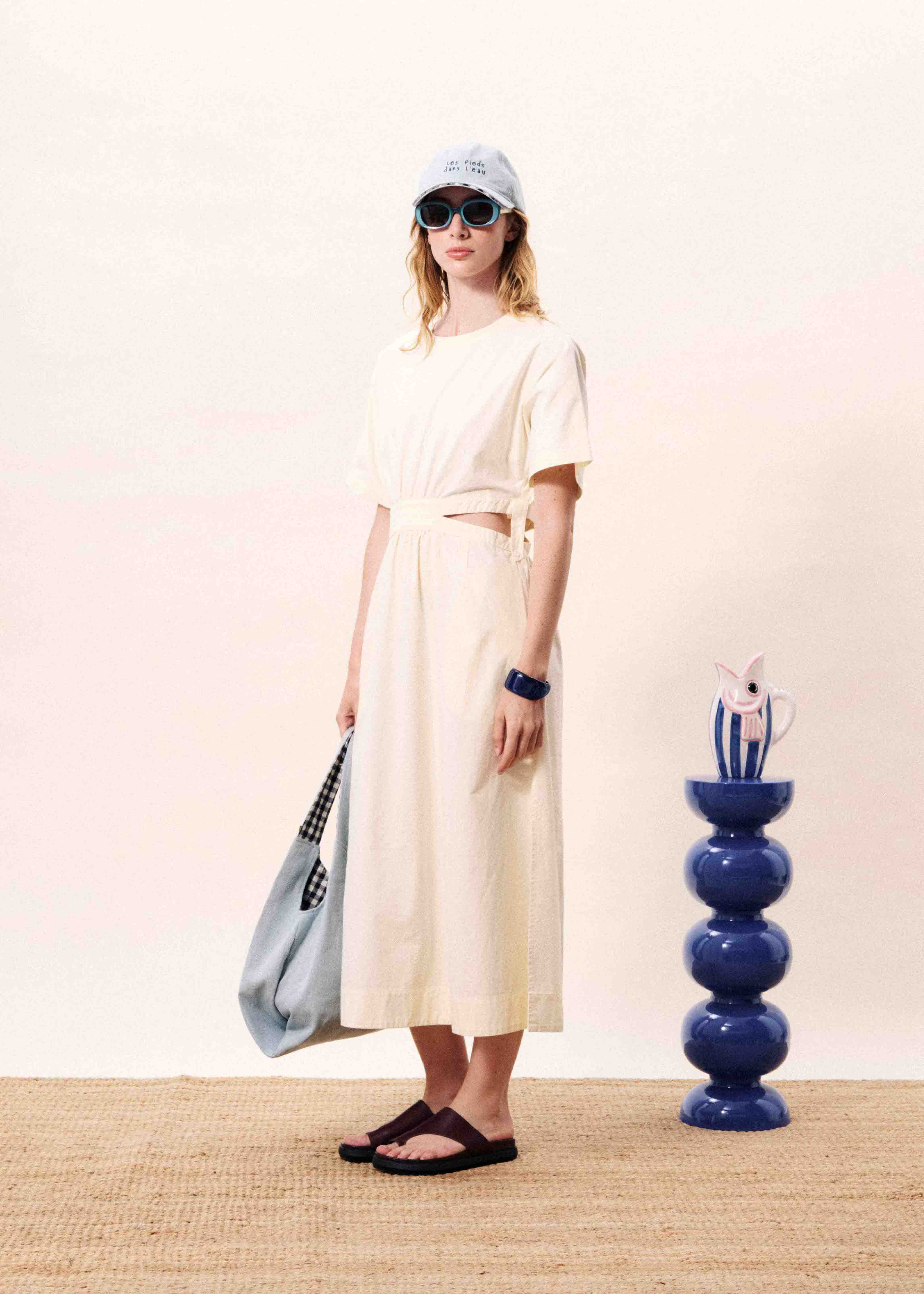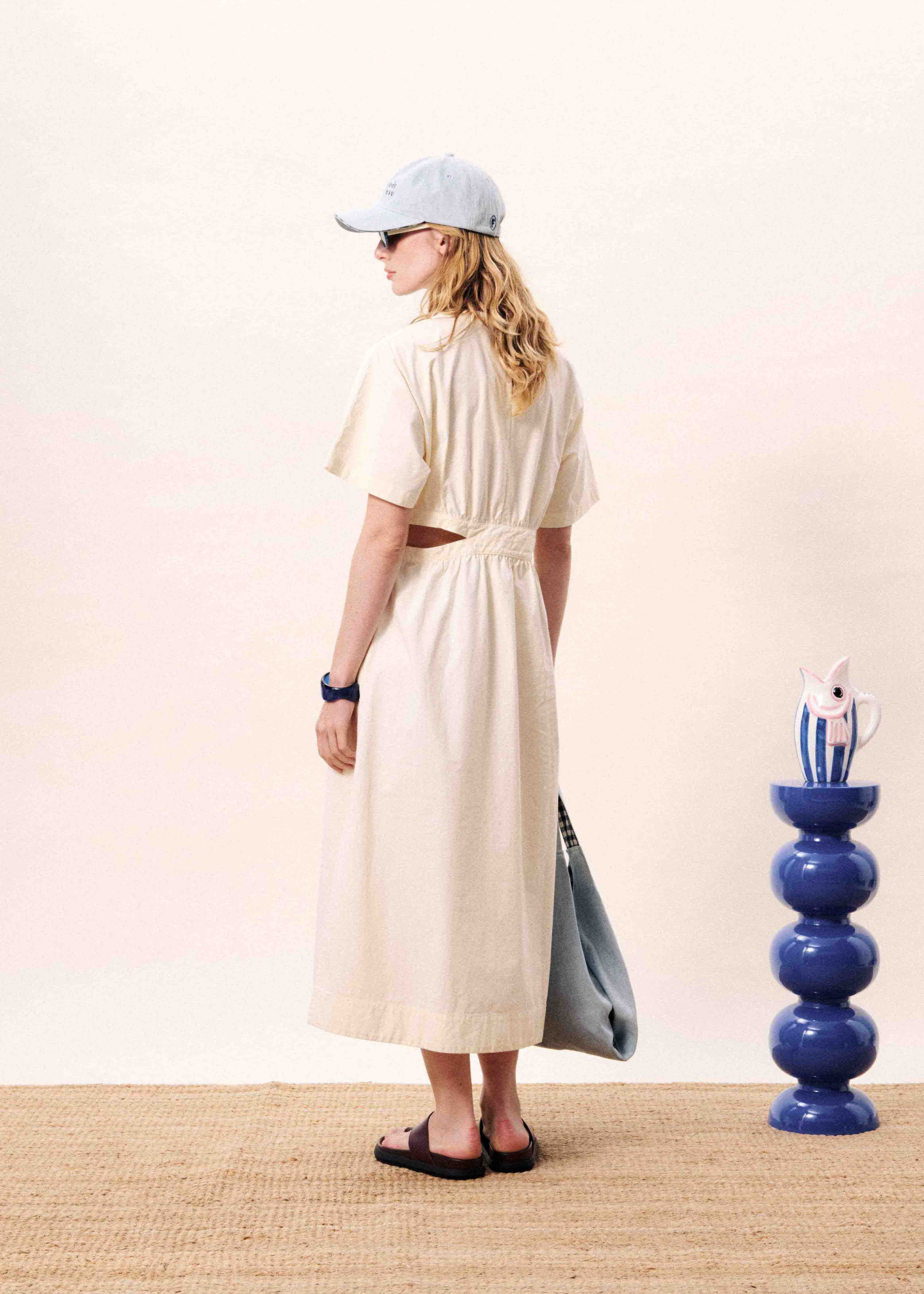 Cotton midi dress with elasticated waistband