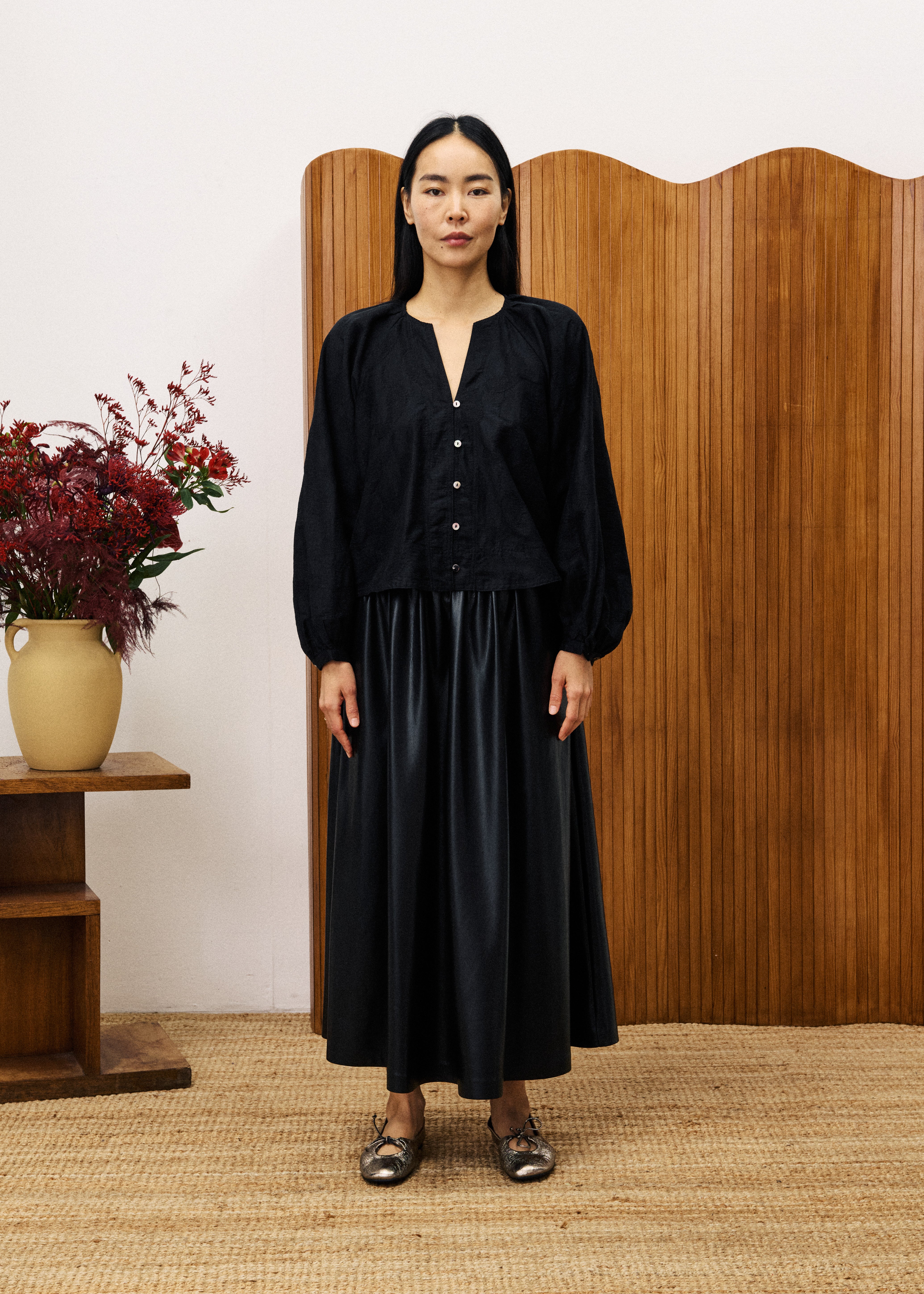 {"id":15049525231989,"title":"Blouse PENSEE Noir","handle":"blouse-pensee-noir","description":"\u003cul\u003e\n\u003cli\u003eUne création issue de CHANGE, notre ligne pensée pour une mode plus responsable\u003c\/li\u003e\n\u003cli\u003eChemise blouse texturé\u003c\/li\u003e\n\u003cli\u003eManches longues bouffantes\u003c\/li\u003e\n\u003cli\u003e Encolure V\u003c\/li\u003e\n\u003cli\u003e Coupe ample et fluide\u003c\/li\u003e\n\u003c\/ul\u003e","published_at":"2025-07-16T11:32:39+02:00","created_at":"2025-06-17T13:55:21+02:00","vendor":"FRNCH","type":"Blouses","tags":["blackfriday25","blackweek25","Blouse","cybermonday25","FM-CHC25694-NOIR","FW25","FW25 PR","Gamme CHANGE","Lyocell","Noir","The Frnch Hotel"],"price":8500,"price_min":8500,"price_max":8500,"available":true,"price_varies":false,"compare_at_price":null,"compare_at_price_min":0,"compare_at_price_max":0,"compare_at_price_varies":false,"variants":[{"id":55503493759349,"title":"XS \/ NOIR","option1":"XS","option2":"NOIR","option3":null,"sku":"CHC25694-NOIR-XS#207734","requires_shipping":true,"taxable":true,"featured_image":null,"available":false,"name":"Blouse PENSEE Noir - XS \/ NOIR","public_title":"XS \/ NOIR","options":["XS","NOIR"],"price":8500,"weight":290,"compare_at_price":null,"inventory_management":"shopify","barcode":"3663642532383","requires_selling_plan":false,"selling_plan_allocations":[]},{"id":55503493792117,"title":"S \/ NOIR","option1":"S","option2":"NOIR","option3":null,"sku":"CHC25694-NOIR-S#207735","requires_shipping":true,"taxable":true,"featured_image":null,"available":true,"name":"Blouse PENSEE Noir - S \/ NOIR","public_title":"S \/ NOIR","options":["S","NOIR"],"price":8500,"weight":290,"compare_at_price":null,"inventory_management":"shopify","barcode":"3663642532390","requires_selling_plan":false,"selling_plan_allocations":[]},{"id":55503493824885,"title":"M \/ NOIR","option1":"M","option2":"NOIR","option3":null,"sku":"CHC25694-NOIR-M#207736","requires_shipping":true,"taxable":true,"featured_image":null,"available":true,"name":"Blouse PENSEE Noir - M \/ NOIR","public_title":"M \/ NOIR","options":["M","NOIR"],"price":8500,"weight":290,"compare_at_price":null,"inventory_management":"shopify","barcode":"3663642532406","requires_selling_plan":false,"selling_plan_allocations":[]},{"id":55503493857653,"title":"L \/ NOIR","option1":"L","option2":"NOIR","option3":null,"sku":"CHC25694-NOIR-L#207737","requires_shipping":true,"taxable":true,"featured_image":null,"available":true,"name":"Blouse PENSEE Noir - L \/ NOIR","public_title":"L \/ NOIR","options":["L","NOIR"],"price":8500,"weight":290,"compare_at_price":null,"inventory_management":"shopify","barcode":"3663642532413","requires_selling_plan":false,"selling_plan_allocations":[]},{"id":55503493890421,"title":"XL \/ NOIR","option1":"XL","option2":"NOIR","option3":null,"sku":"CHC25694-NOIR-XL#207738","requires_shipping":true,"taxable":true,"featured_image":null,"available":false,"name":"Blouse PENSEE Noir - XL \/ NOIR","public_title":"XL \/ NOIR","options":["XL","NOIR"],"price":8500,"weight":290,"compare_at_price":null,"inventory_management":"shopify","barcode":"3663642532420","requires_selling_plan":false,"selling_plan_allocations":[]}],"images":["\/\/www.frnch.fr\/cdn\/shop\/files\/CHC25694-NOIR-1_e437737c-365a-4898-96e6-ac8885a891ca.jpg?v=1764846860","\/\/www.frnch.fr\/cdn\/shop\/files\/CHC25694-NOIR-2_8353c8cd-ae09-4ad9-82f9-50af06089c7a.jpg?v=1764846860","\/\/www.frnch.fr\/cdn\/shop\/files\/CHC25694-NOIR-3_1bacf603-7565-4964-b378-d8eda9ee2347.jpg?v=1764846860","\/\/www.frnch.fr\/cdn\/shop\/files\/CHC25694-NOIR-4_b5f1f9e7-33d5-48d0-83e9-2027cfc368de.jpg?v=1764846860","\/\/www.frnch.fr\/cdn\/shop\/files\/CHC25694-NOIR-5.jpg?v=1764846860"],"featured_image":"\/\/www.frnch.fr\/cdn\/shop\/files\/CHC25694-NOIR-1_e437737c-365a-4898-96e6-ac8885a891ca.jpg?v=1764846860","options":["Taille","Couleur"],"media":[{"alt":null,"id":67135313117557,"position":1,"preview_image":{"aspect_ratio":0.714,"height":5796,"width":4140,"src":"\/\/www.frnch.fr\/cdn\/shop\/files\/CHC25694-NOIR-1_e437737c-365a-4898-96e6-ac8885a891ca.jpg?v=1764846860"},"aspect_ratio":0.714,"height":5796,"media_type":"image","src":"\/\/www.frnch.fr\/cdn\/shop\/files\/CHC25694-NOIR-1_e437737c-365a-4898-96e6-ac8885a891ca.jpg?v=1764846860","width":4140},{"alt":null,"id":67135313084789,"position":2,"preview_image":{"aspect_ratio":0.714,"height":5796,"width":4140,"src":"\/\/www.frnch.fr\/cdn\/shop\/files\/CHC25694-NOIR-2_8353c8cd-ae09-4ad9-82f9-50af06089c7a.jpg?v=1764846860"},"aspect_ratio":0.714,"height":5796,"media_type":"image","src":"\/\/www.frnch.fr\/cdn\/shop\/files\/CHC25694-NOIR-2_8353c8cd-ae09-4ad9-82f9-50af06089c7a.jpg?v=1764846860","width":4140},{"alt":null,"id":67135313019253,"position":3,"preview_image":{"aspect_ratio":0.714,"height":5796,"width":4140,"src":"\/\/www.frnch.fr\/cdn\/shop\/files\/CHC25694-NOIR-3_1bacf603-7565-4964-b378-d8eda9ee2347.jpg?v=1764846860"},"aspect_ratio":0.714,"height":5796,"media_type":"image","src":"\/\/www.frnch.fr\/cdn\/shop\/files\/CHC25694-NOIR-3_1bacf603-7565-4964-b378-d8eda9ee2347.jpg?v=1764846860","width":4140},{"alt":null,"id":67135313052021,"position":4,"preview_image":{"aspect_ratio":0.714,"height":5797,"width":4140,"src":"\/\/www.frnch.fr\/cdn\/shop\/files\/CHC25694-NOIR-4_b5f1f9e7-33d5-48d0-83e9-2027cfc368de.jpg?v=1764846860"},"aspect_ratio":0.714,"height":5797,"media_type":"image","src":"\/\/www.frnch.fr\/cdn\/shop\/files\/CHC25694-NOIR-4_b5f1f9e7-33d5-48d0-83e9-2027cfc368de.jpg?v=1764846860","width":4140},{"alt":null,"id":64783563096437,"position":5,"preview_image":{"aspect_ratio":0.714,"height":2870,"width":2050,"src":"\/\/www.frnch.fr\/cdn\/shop\/files\/CHC25694-NOIR-5.jpg?v=1764846860"},"aspect_ratio":0.714,"height":2870,"media_type":"image","src":"\/\/www.frnch.fr\/cdn\/shop\/files\/CHC25694-NOIR-5.jpg?v=1764846860","width":2050}],"requires_selling_plan":false,"selling_plan_groups":[],"content":"\u003cul\u003e\n\u003cli\u003eUne création issue de CHANGE,