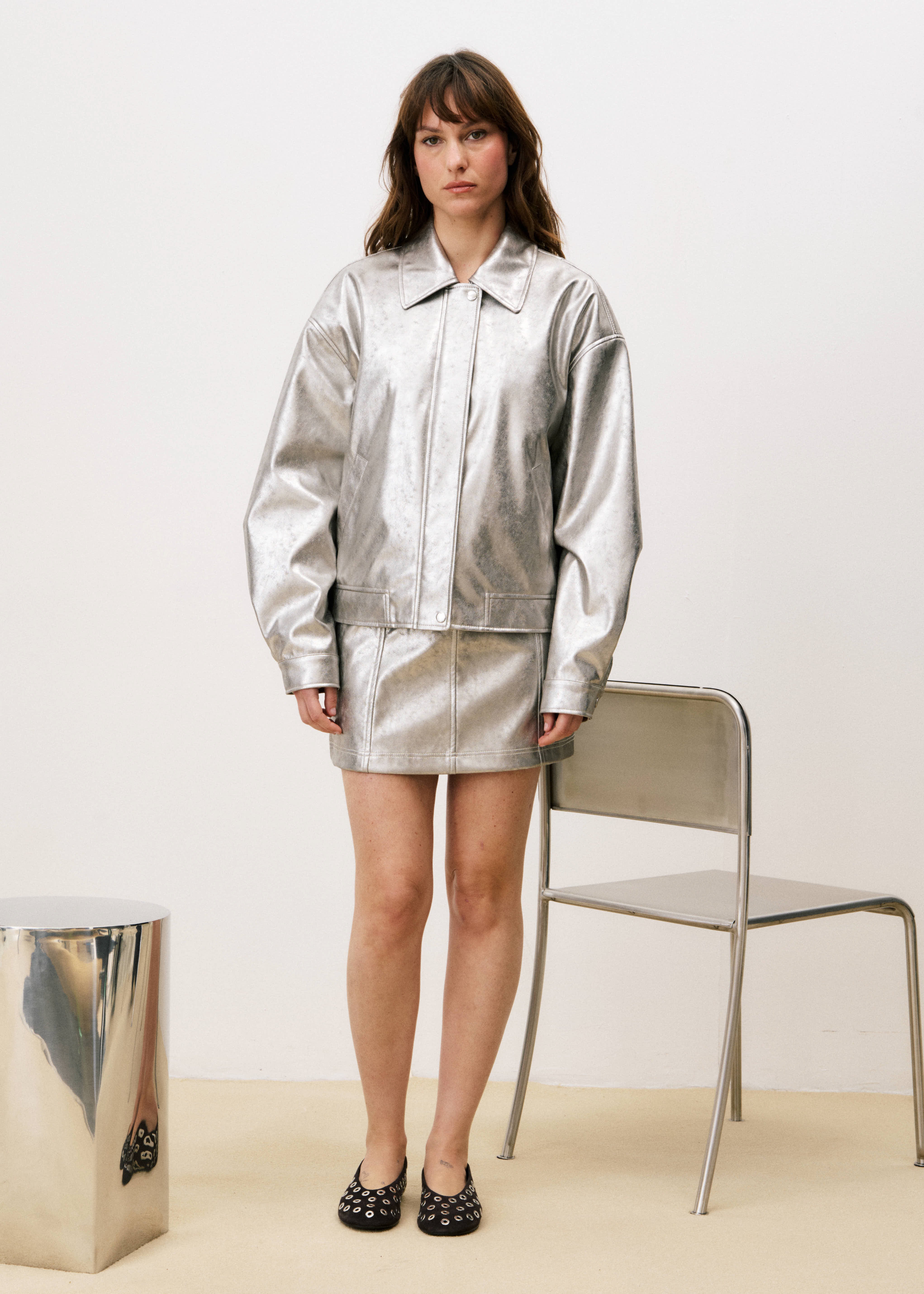 • Matière effet cuir métallisé argenté