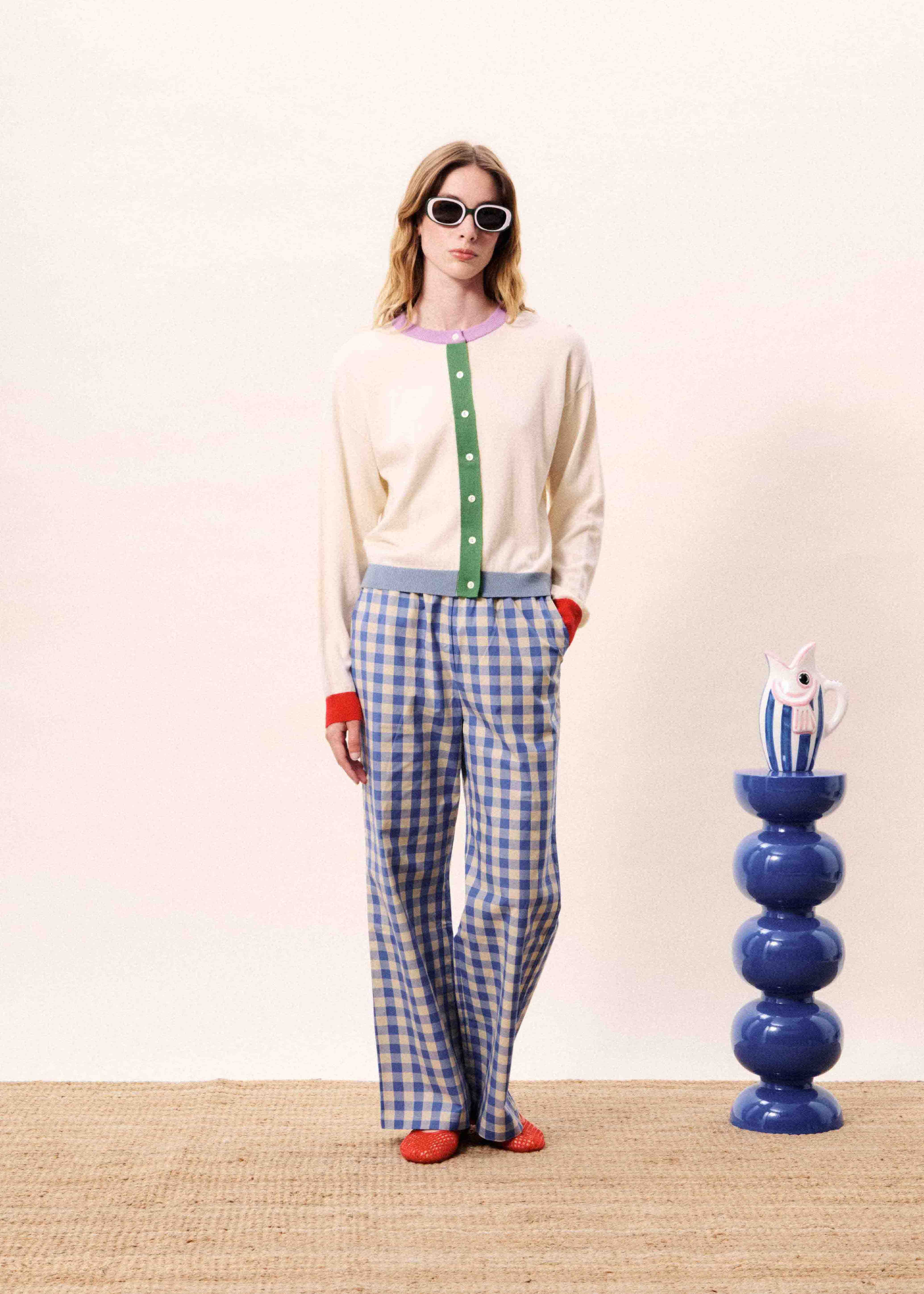 Cardigan en maille avec détails colorblock et boutonnage central.