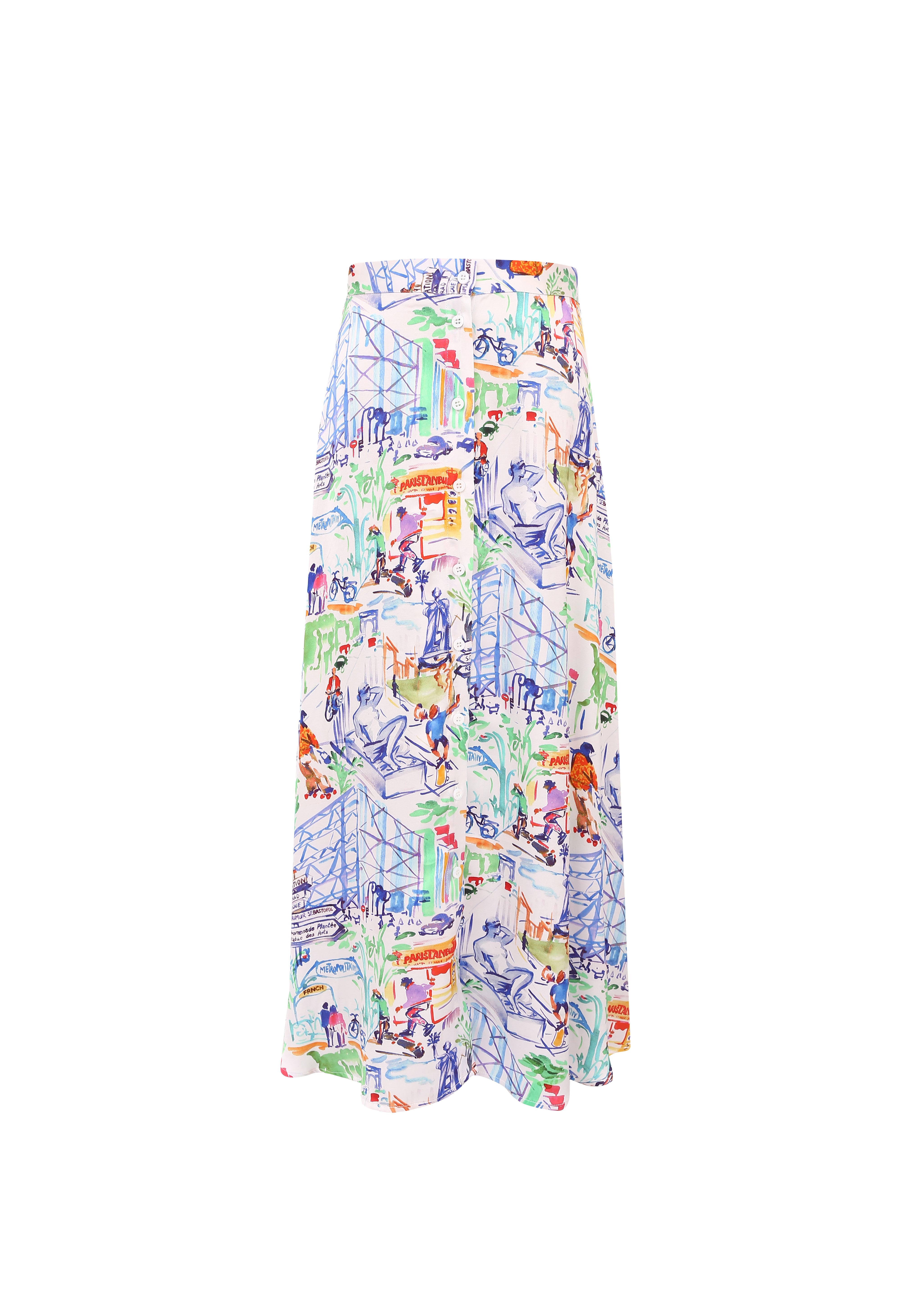 Vous pouvez associer cette jupe fluide et aux motifs colorés avec la chemise Chelly ou un haut blanc pour combler votre look.