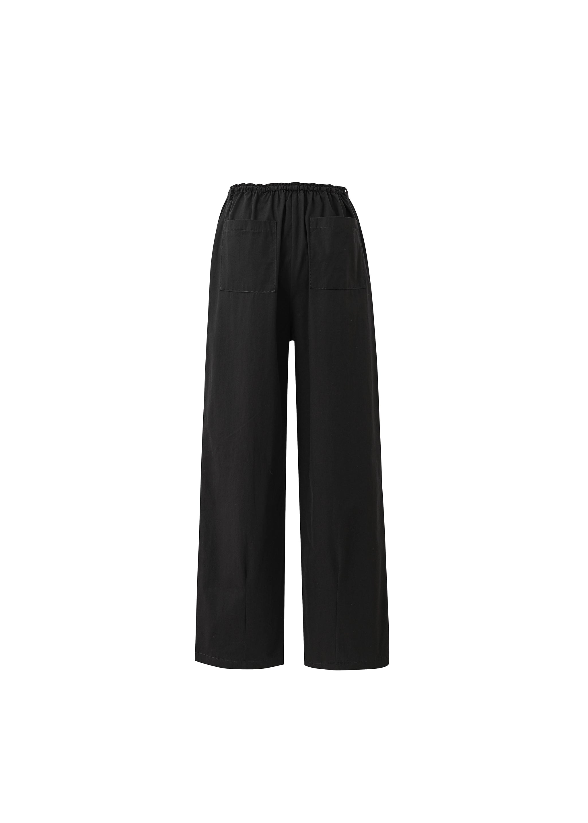 Pantalon large en chaine et trame avec cordon de serrage à la taille.