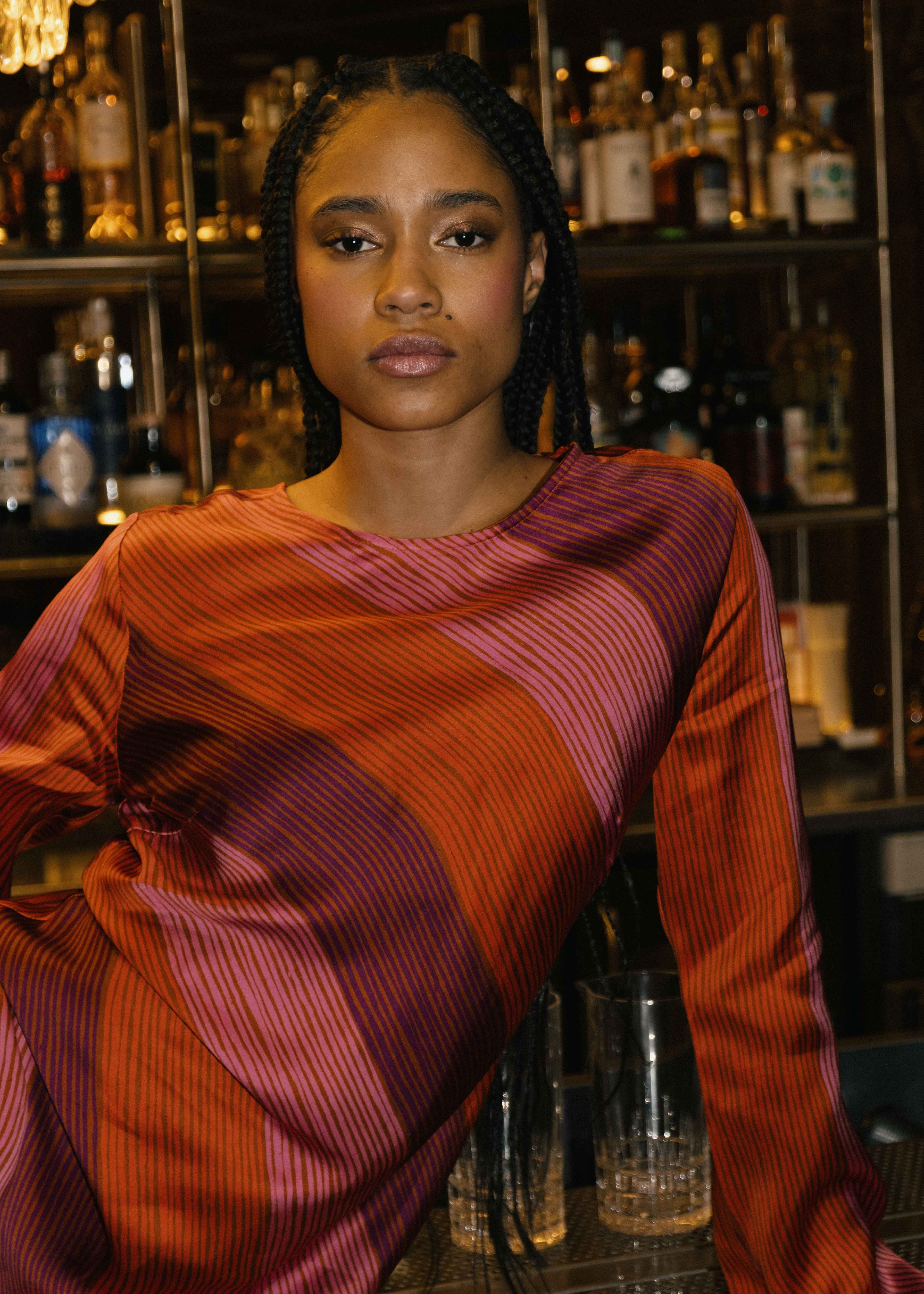 • Imprimé rayures multicolores en biais