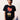 T-shirt oversize en coton noir avec impression graphique colorée au centre.